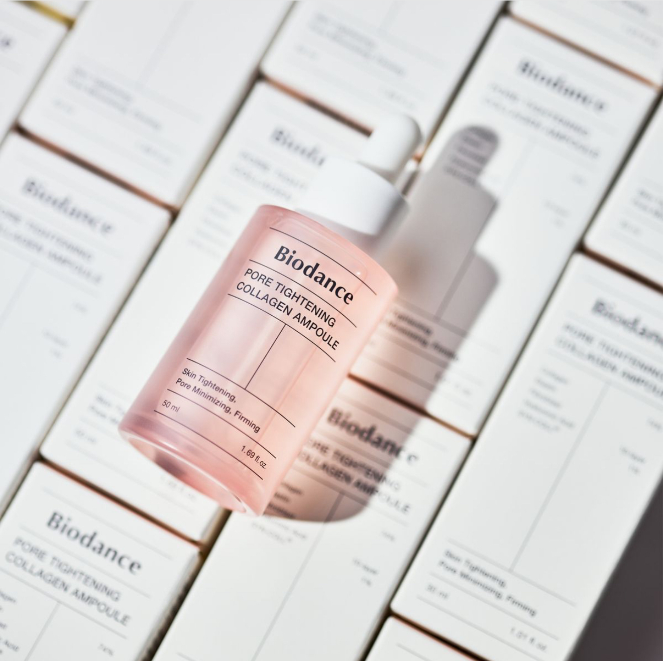 Συσφικτική αμπούλα σε ορό για μείωση των διευρυμένων πόρων με ισχυρή αντιγήρανση που προσφέρει λάμψη.